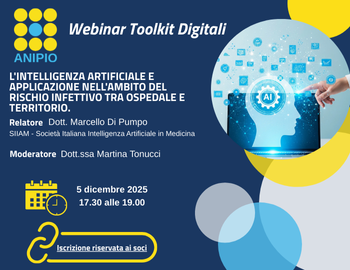 Prosegue il percorso formativo con i webinar Toolkit Digitali, pensati per approfondire strumenti, metodologie e innovazioni a supporto della prevenzione e del controllo delle infezioni. Il prossimo appuntamento in programma per il 5 dicembre dalle ore 17.30 alle ore 19.00 sarà dedicato al ruolo dell’Intelligenza Artificiale nella gestione del rischio infettivo tra ospedale e territorio.